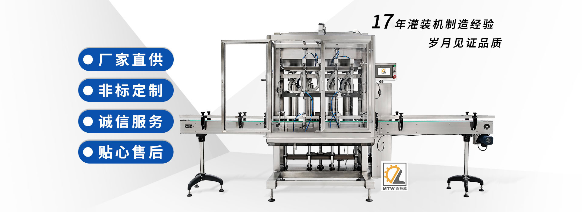 邁特威自動(dòng)化設(shè)備(天津)有限公司坐落于素有京津明珠之稱(chēng)的天津·武清區(qū),是國(guó)家高新技術(shù)企業(yè),專(zhuān)注生產(chǎn)、研發(fā)、銷(xiāo)售全自動(dòng)灌裝機(jī)、旋蓋機(jī)、封口機(jī)、貼標(biāo)機(jī)等系列產(chǎn)品,立足京津冀、服務(wù)全國(guó),遠(yuǎn)銷(xiāo)海內(nèi)外,團(tuán)隊(duì)由行業(yè)高技術(shù)人士組成,為國(guó)內(nèi)外食品、日化、糧油、醫(yī)藥等企業(yè)提供滿意的包裝解決方案。